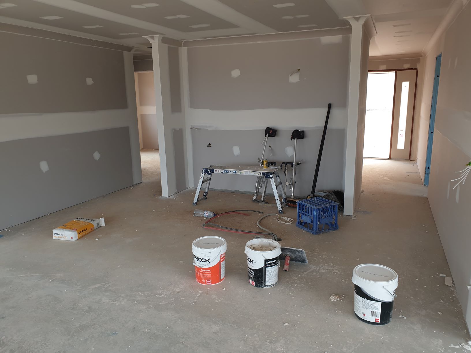 The gyp-rockers then came in and put up the internal walls which gave more definition to the internal size of our rooms