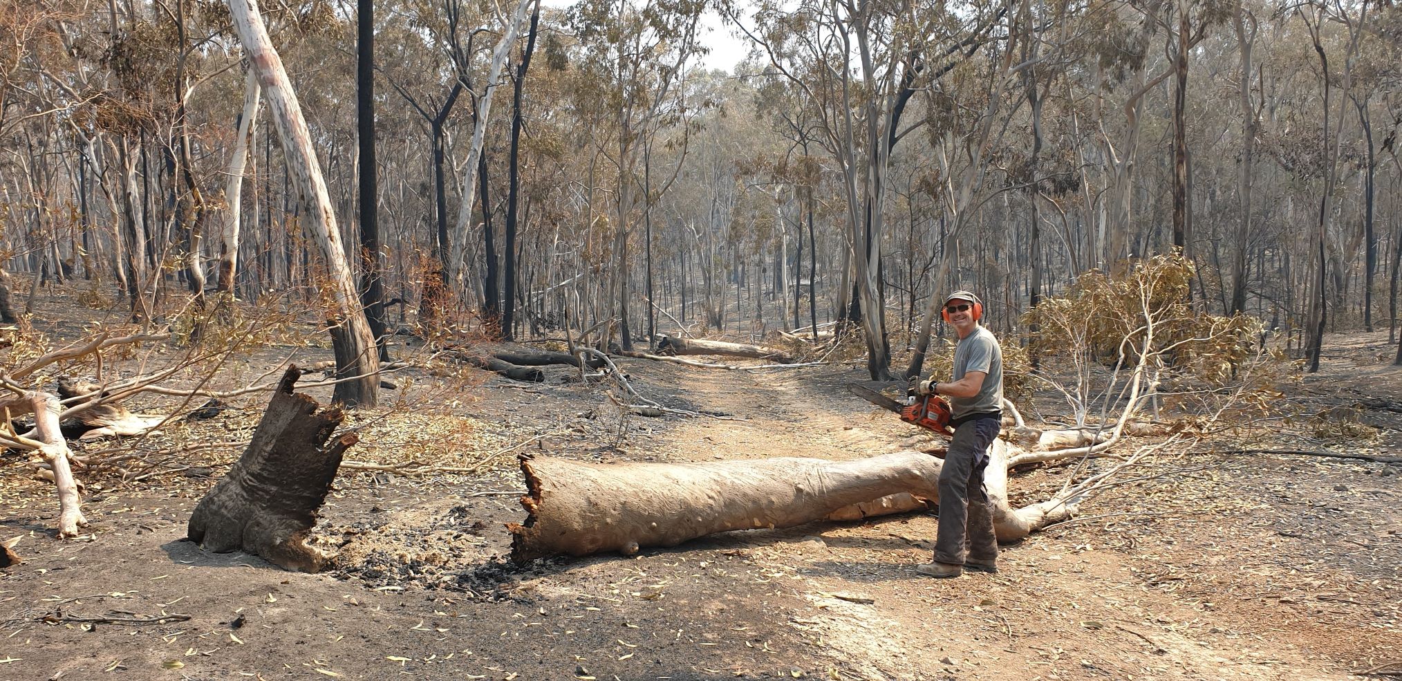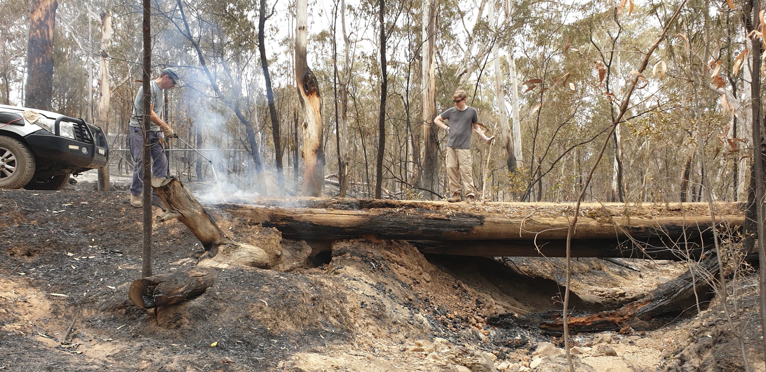 Our controversial logger’s bridge was partly damaged in the fire and Will and I spent half a day putting out the smouldering logs. Good as new.
