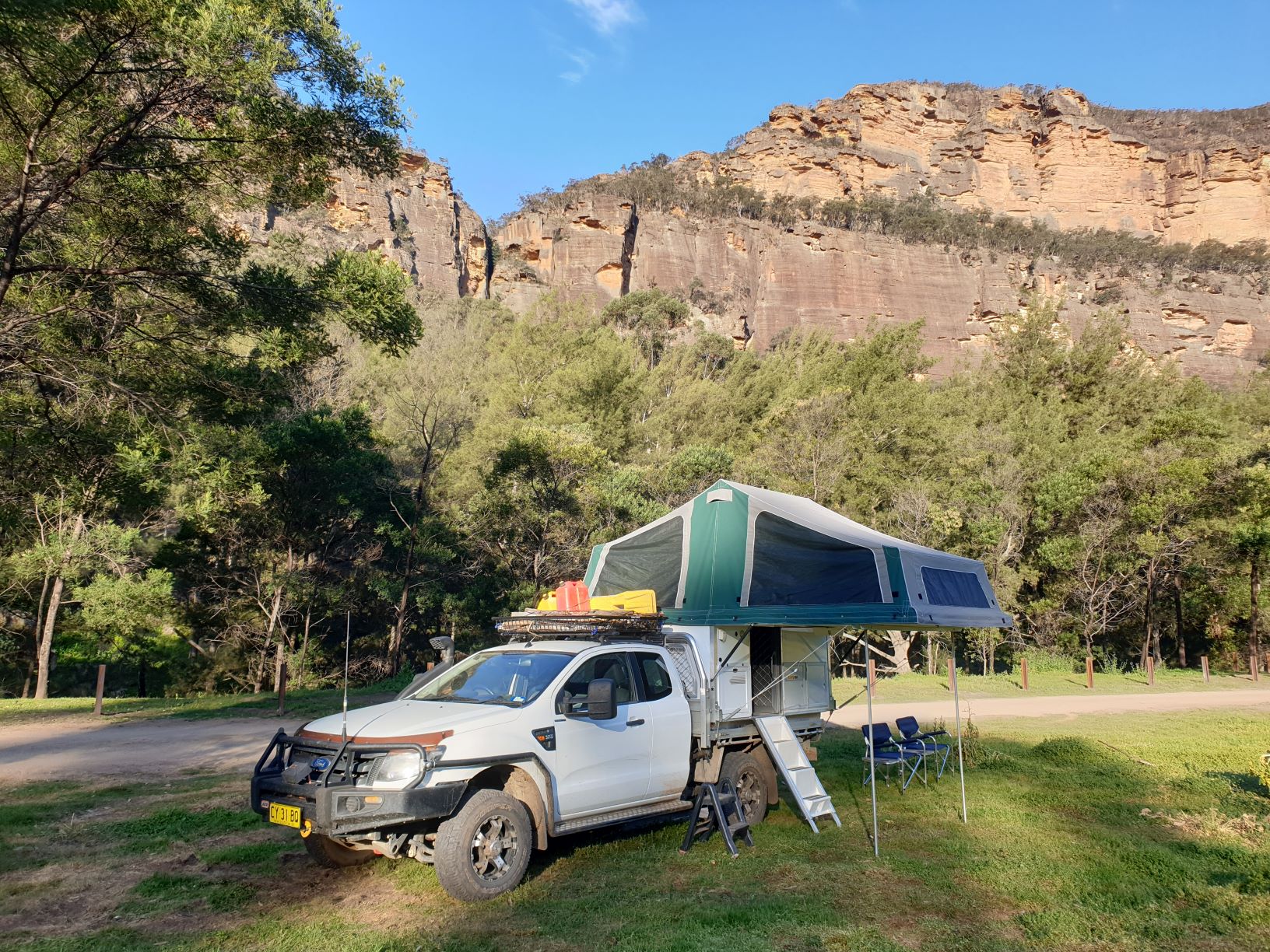 The magnificent Capertee Valley closes its high escarpment walls behind the old mining town of Glen Davis – and this was the setting for our first night