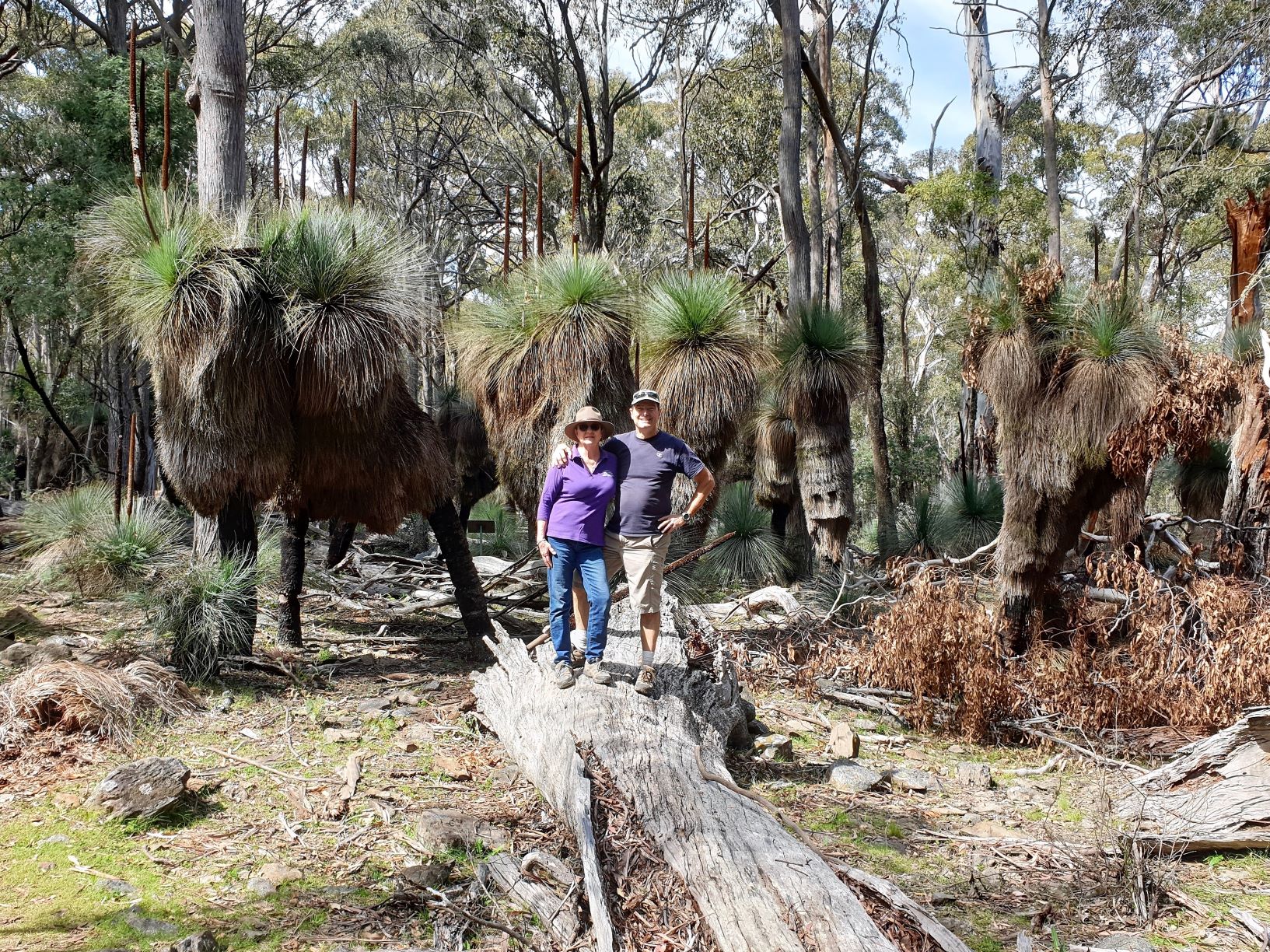 Julie and I standing in front of some of these great grass trees, some of them a couple centuries old