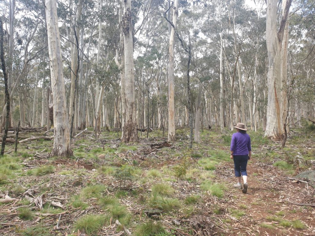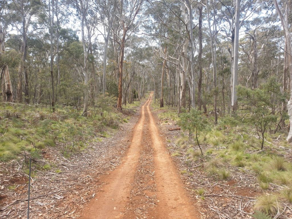 Our map showed the obscure Tinkrameanah National Park, which was reported to have no tourist facilities, development or purpose other than to preserve native forests. We asked an old grazier if there was a way to get to the park around or through private land and sure enough, he gave us exact directions along an obscure track. There we were, following an overgrown sandy track through this preserved land, perhaps the first visitors in weeks. A perfect spot for lunch.