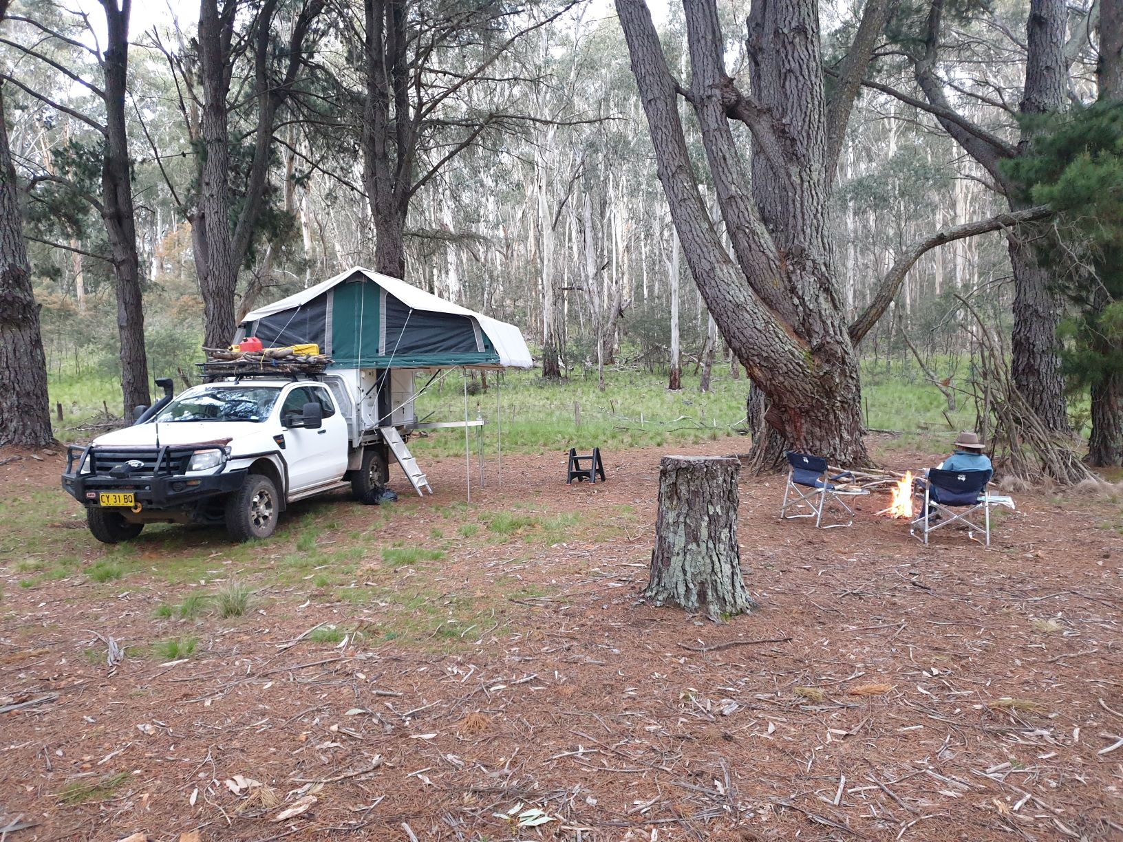 We also did a lovely five kilometre walk amongst the various gums that thrive at this altitude, many of them damaged by recent fires, fabulous views looking off the escarpment as the sun set lower, before setting up camp at a campsite called Dawsons Spring and enjoying a cool but invigorating evening around the fire and amongst the gums.