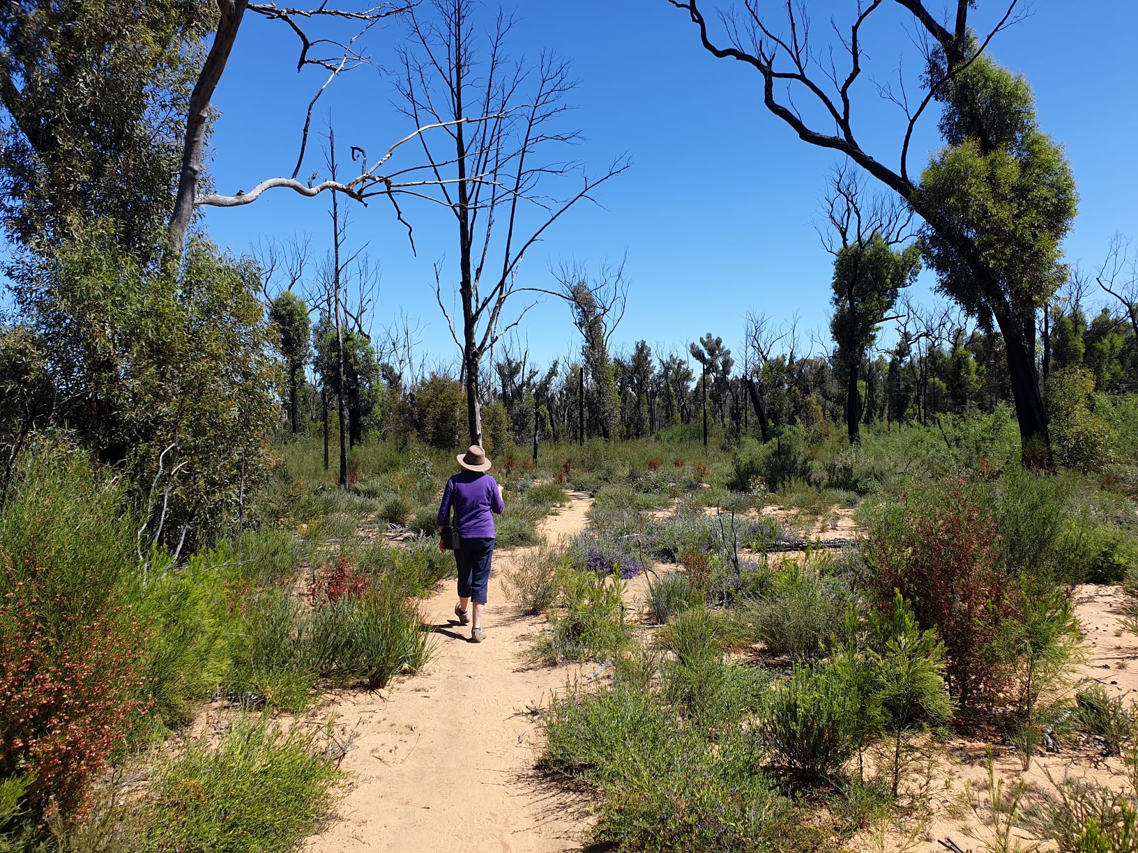 Walking amongst sections of the burned out forest showed the familiar destruction of fire but also the fantastic rejuvenating capabilities of the Aussie bush
