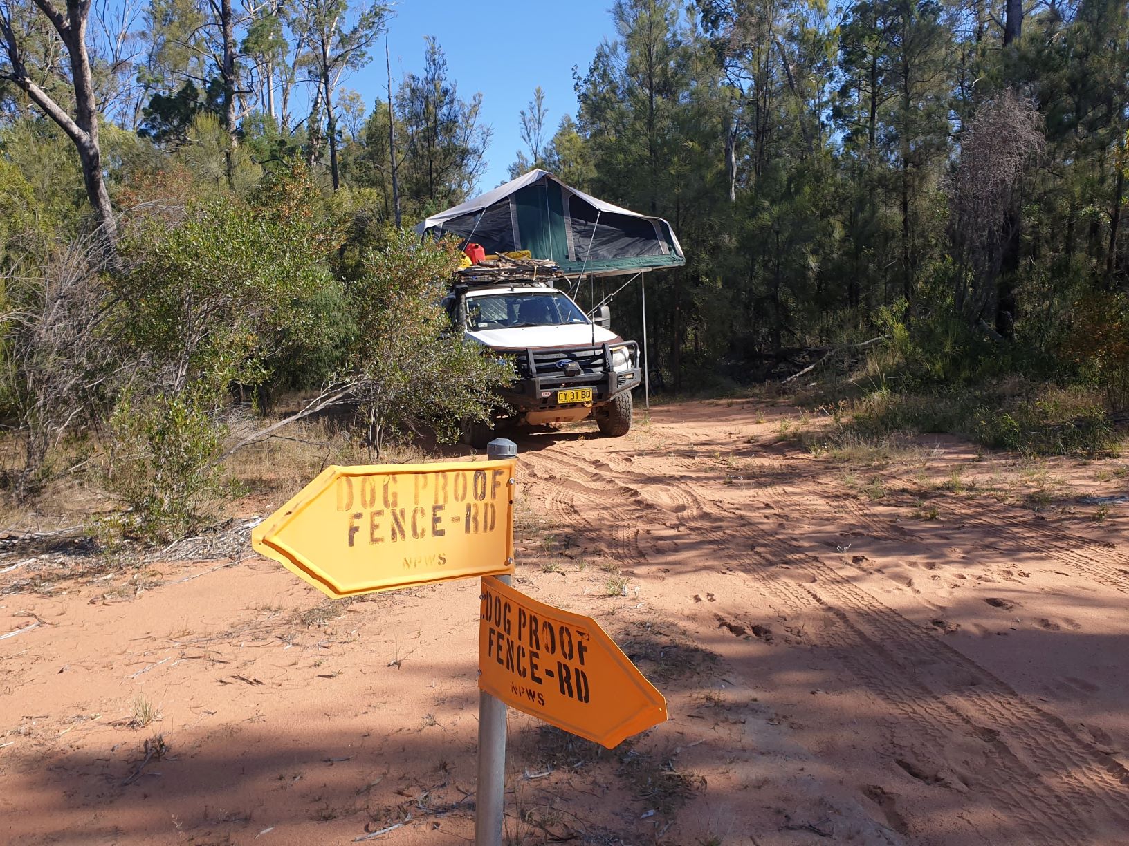 We found a little place to tuck in for the night at the corner of the Dog Proof Fence…which didn’t look like it was up to its name