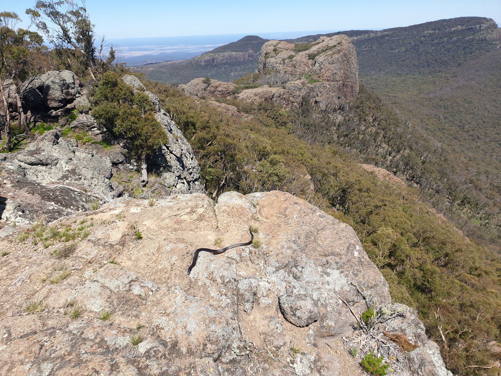 This spectacular view from the Governors Lookout had the special bonus of a red belly black snake slithering across the rock at our feet