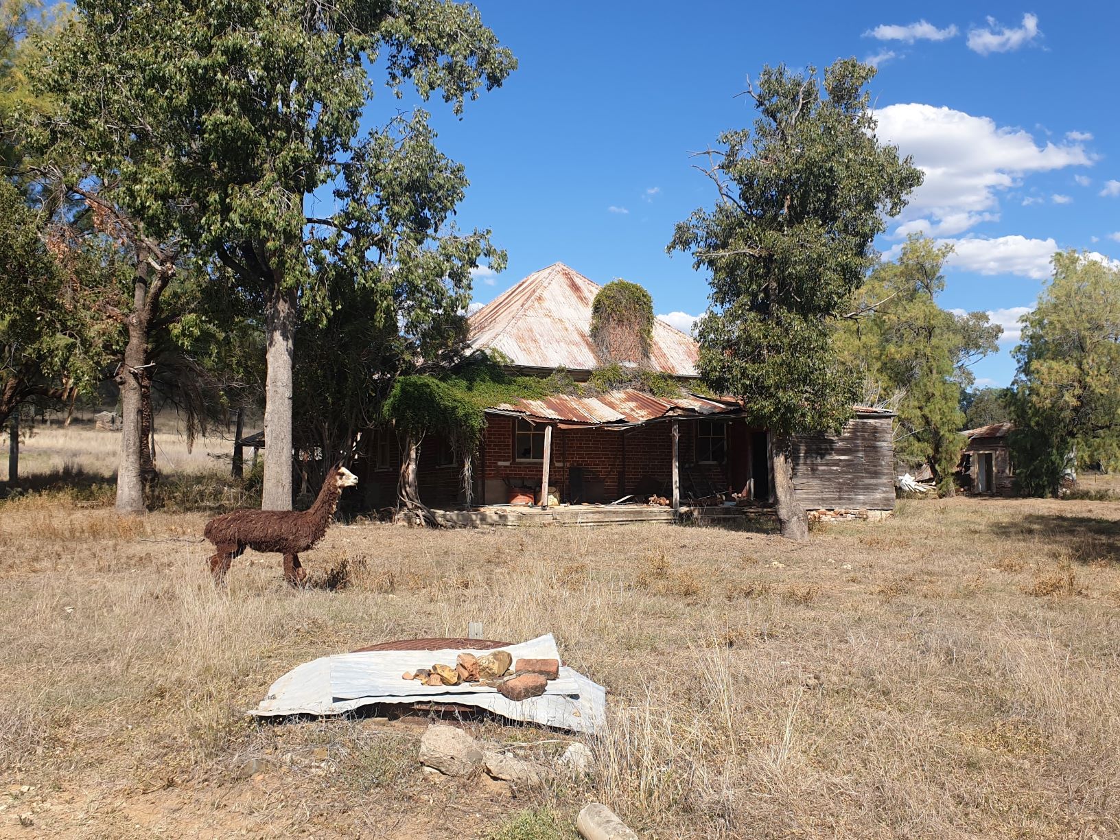 An old deserted farm house is still called home by this random alpaca…not sure what the whole story is here