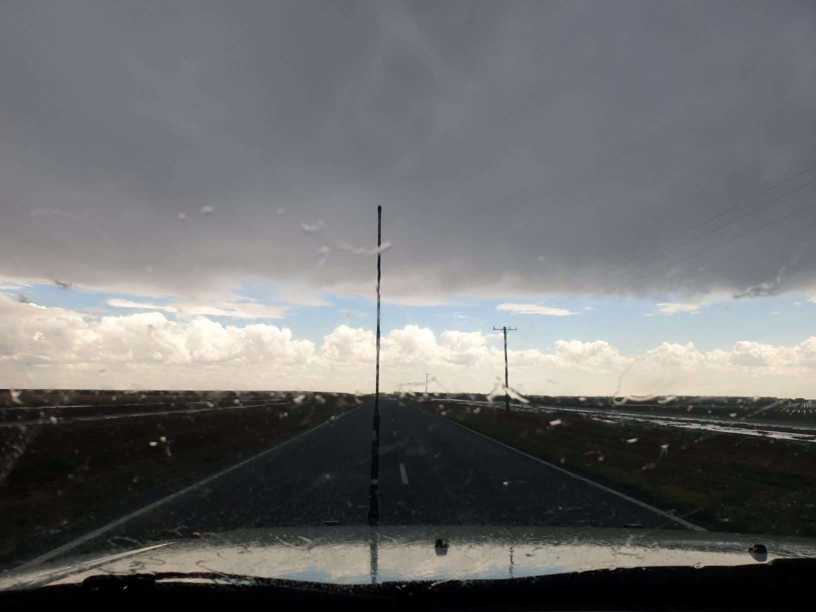 Dark and foreboding thunder and lightning storms moved across the open plains and were very cool to drive through