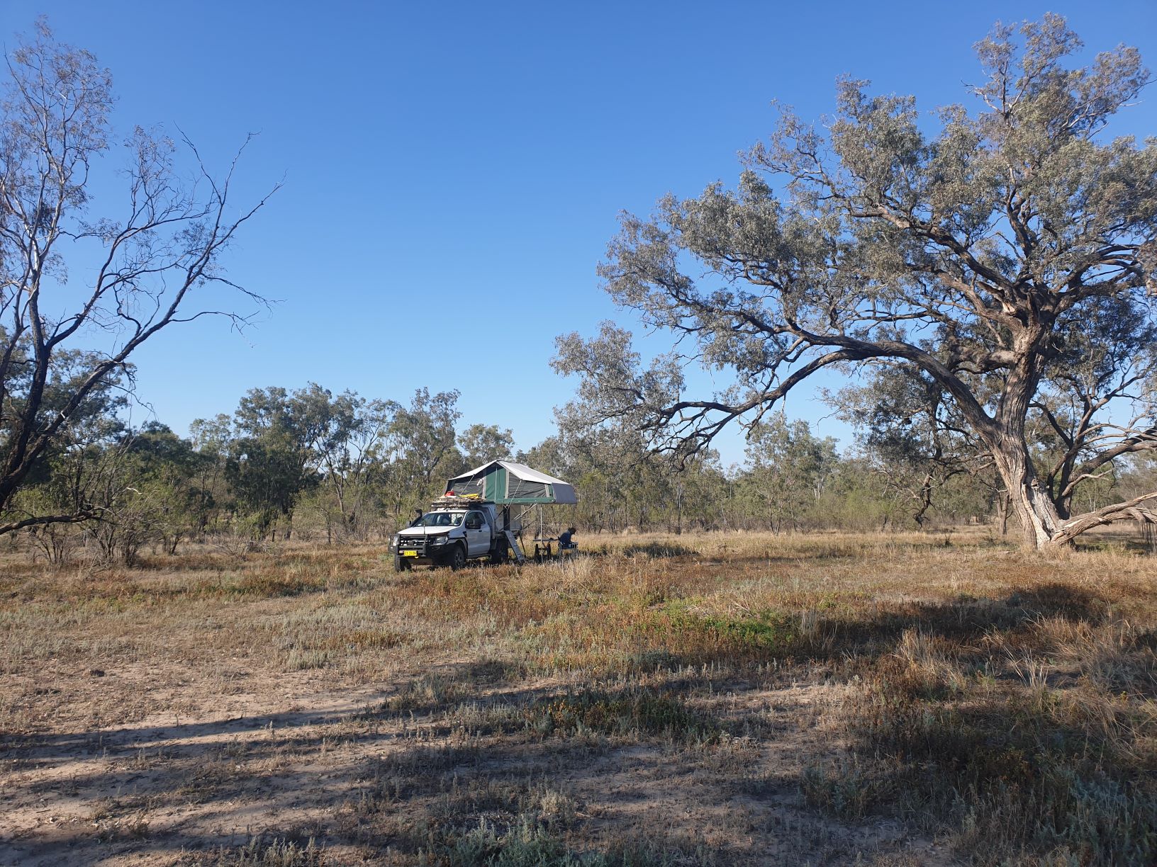 Having a proven solution for finding beautiful camping spots, we headed north to the Narran River where we found another beaut spot under another huge coolabah tree on the banks of this motionless latte-coloured river. Absolute paradise (except for the friendly flies).