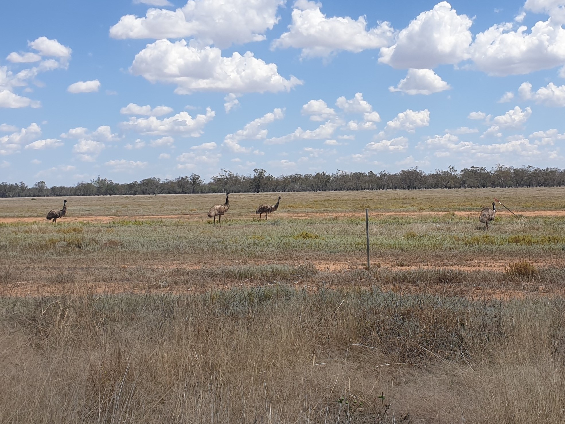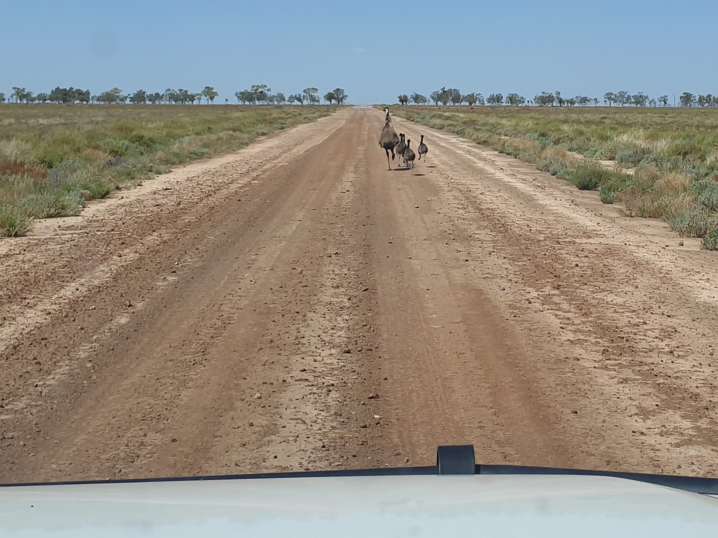 Emus and their chicks were a constant entertainment as we moved west – the problem is they sometimes dart out on the road in front of an ever-wary Wanda