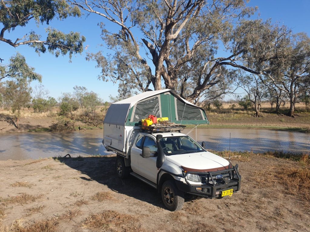 We camped that night near the Barwon River under a giant gum generously spreading his limbs to provide us late afternoon shade. Never mind the army of annoying flies, after all – we’re visitors in their home, this was another tranquil Aussie bush site like we love so much.