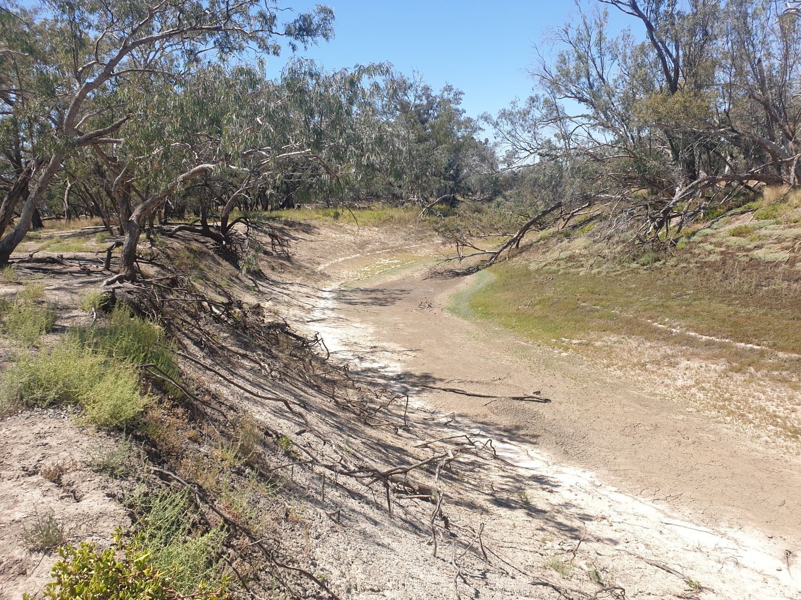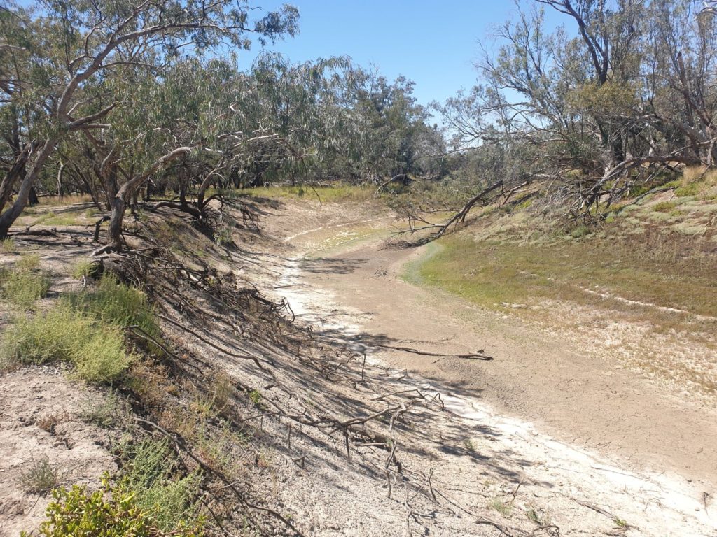 The Culgoa River, which weaves its way through this land and is said to host a wide range of birds, was completely dry save for a couple of shrinking billabongs and the combination of the intense heat and the attack flies made the park much less compelling than in the brochures. Julie and I walked along the river’s banks, enjoyed a lunch in some precious shade and decided the lure of other places was too much to keep us in this dusty and hot camp. Onward!
