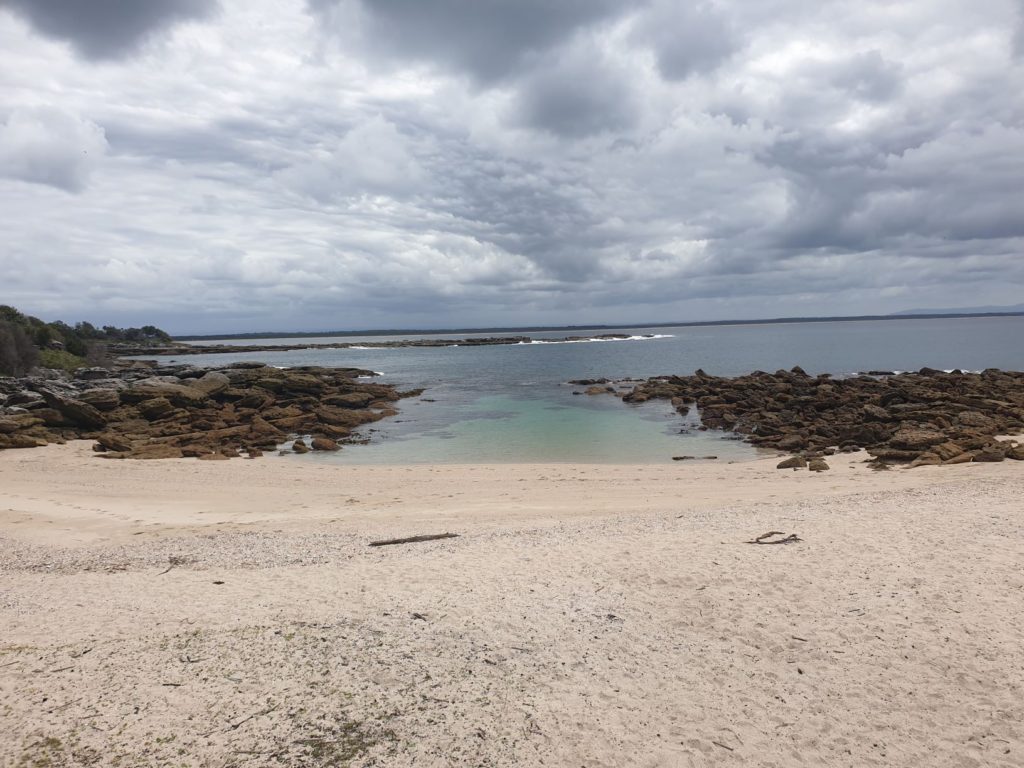 We had hoped to spend most of the next day with sand between our toes but grey clouds and the occasional rain squall put paid to that plan. Instead we squeezed in two great little walks, the two kilometre Temptation Creek nature trail and a fun stroll exploring the rock shelf at low tide around Bristol Point.