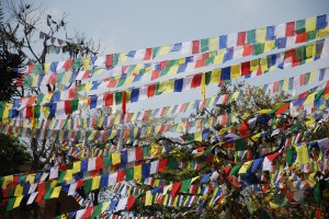 The next stop was Boudhanath Stupa, the largest in Nepal, a massive round and blindingly white bell-shaped stupa surrounded by shops and multiple monasteries. This was an impressive beast, complete with the eyes and nose again as well as the ubiquitous strings of prayer flags, and we admired it at length from our roof top restaurant.