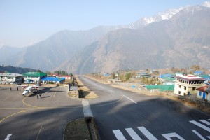 But enough of this stuff. We’re here to trek and trek we shall. The next morning we were met at 0530 by our young trekking guide Arjan, transferred to the Domestic terminal in the dark and waited for our flight to be called. And not just any flight – we were flying to the mountain town of Lukla, high in the Himalayas at 2830 metres (about 8,800 feet), thereby shortening the trek by six days each way.
