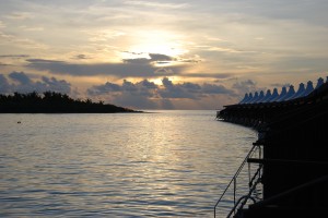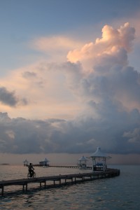 The afternoon and evening was absorbed by swimming off our back deck, sunset drinks at the main bar, the buffet dinner and cultural dancing by men wearing funny sailor hats. But what a great day, we saw a fair amount of Male in the morning, enjoyed a memorable seaplane trip over the breathtakingly beautiful atolls and were welcomed by our ocean bungalow. Yes, it was stinking hot but worth it a million times over.