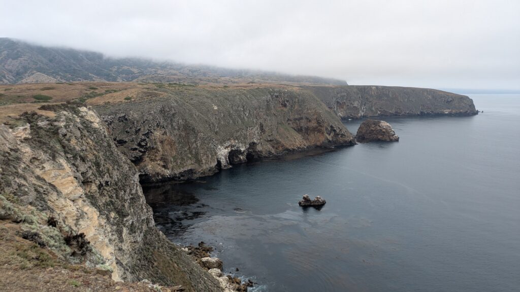 We caught the ferry over from Ventura and then strung a couple of beautiful walks together, usually following the edge high above the dramatic cliffs but also through a few valleys and the two campsites which are nestled under groves of gum trees – the only shade on the island. And as a special bonus we saw two animals found only on Santa Cruz Island – the island fox and the scrub blue jay. Very cool.