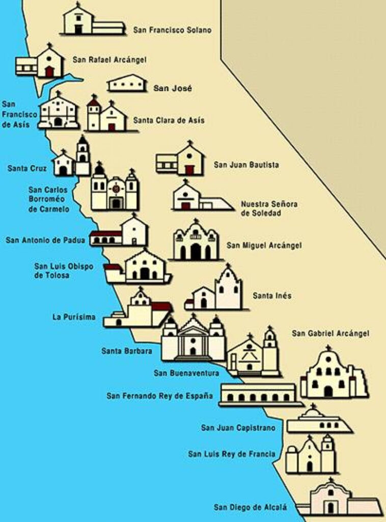 The history of European settlement of California is different to the rest of the United States in that instead of pioneers moving westward in search of new land from the east coast, California was settled by Spanish missionaries from the south in search of new souls. Core to that fascinating movement over 200 years ago is the establishment of 21 missions throughout California by these Spanish priests. And Julie and I wanted to dive right into these juicy history pages.