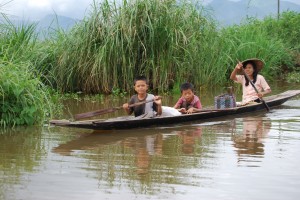 From the moment we arrived (ahead of schedule) at the local airport in Heho we fell in love with the place. On the drizzly drive to the lake we stopped at an ancient teak monastery to see young novices chant their lessons and passed through endless fields of green healthy rice at all stages of growth. We saw large groups of mainly women standing in knee deep water going through the age-old process of planting rice by hand. We were later told that often the women of the surrounding families will all work together as a group planting each other’s rice as a team so that each family can get their crop in and out on time.