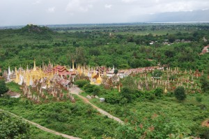 Behind the village was a long covered walkway up to the top of the nearby hill where the beautiful Shwe Inn Thein Paya still stood brightly after 300 years. And around it was over 1,000 zetis, or stupas or chedis, again, take your pick. A 1,000 zetis covers a lot of ground and it was fascinating to walk amongst them in their various states of disrepair, admiring the art work and the sheer volume of the locals’ religious beliefs on display.
