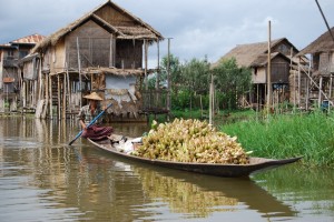 One feature we were absolutely amazed at was these floating gardens which are mainly located near the stilted village of Nampan. The farmers (technically not fishermen I guess) build these long trellises which they fill with plant matter and dirt. They pin them down so they don’t float away by sticking long bamboo poles through them into the bottom of the shallow lake. We were told they grow cucumbers, flowers and other things depending on the time of year but what we saw was tomatoes, rows and rows, acre after acre, smallish plants and smallish tomatoes but virtual ‘fields’ of tomatoes everywhere.