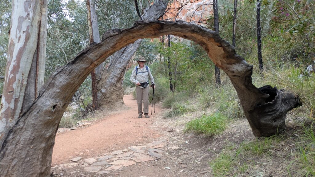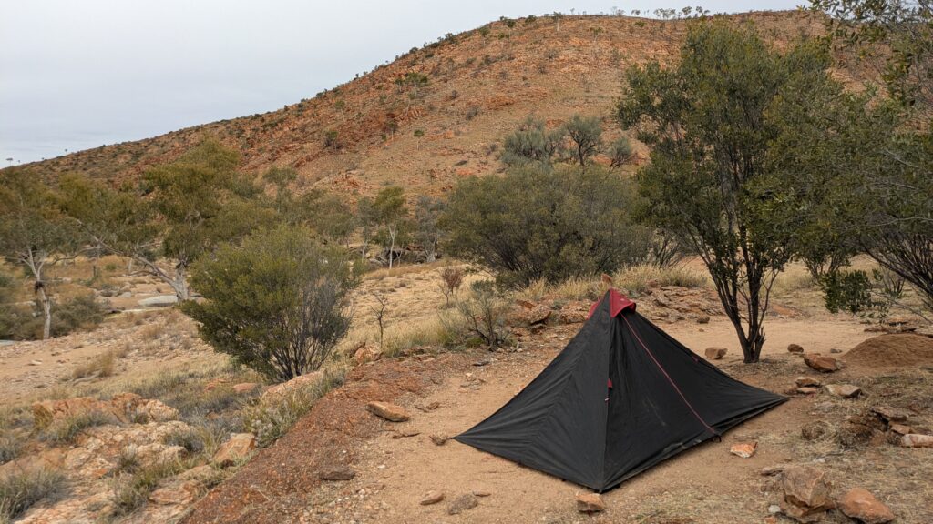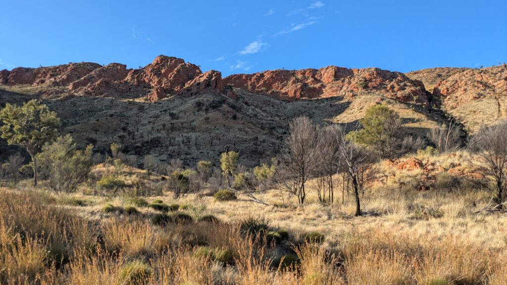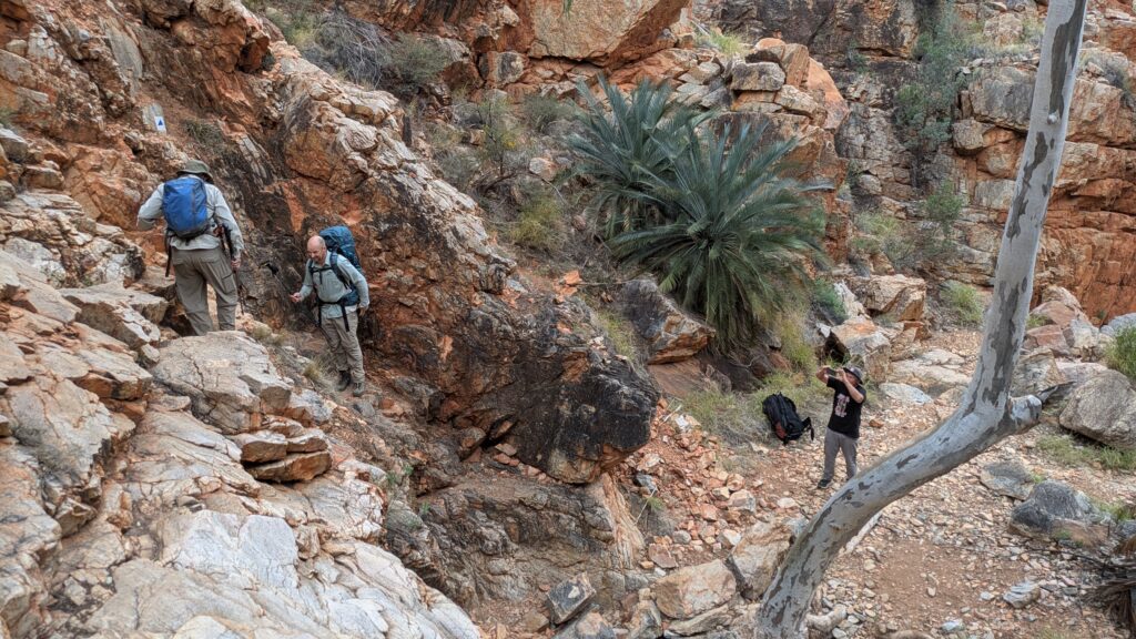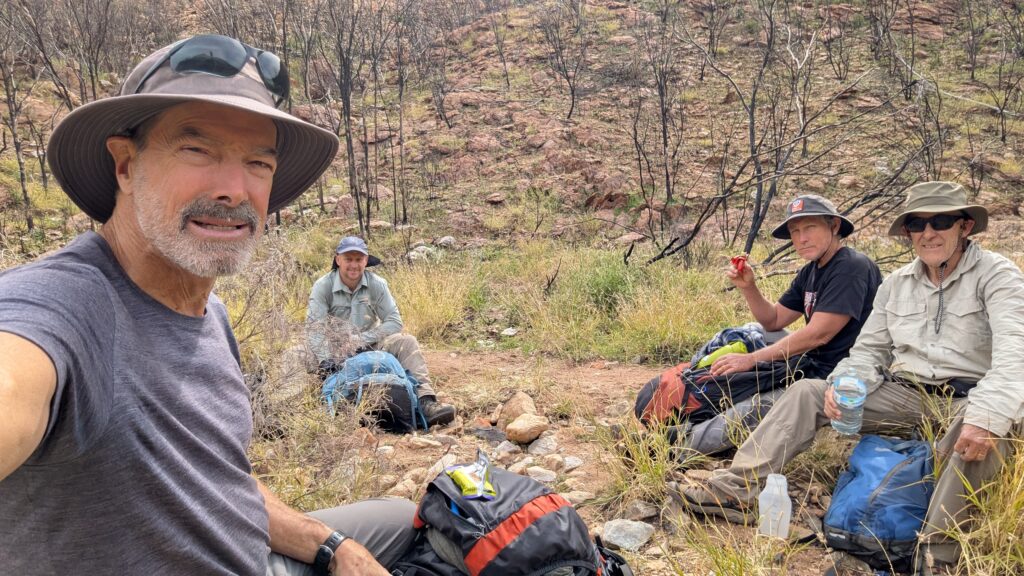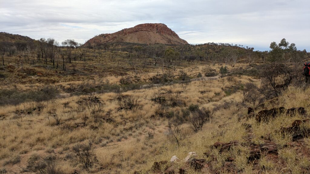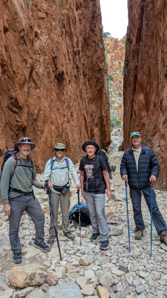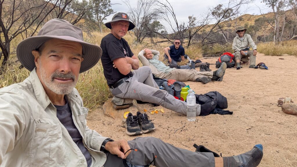 Following these three tough days we knew we had a relatively easy walk over the next three days to our finish line at the Telegraph Station near Alice Springs. The cloud cover and flatish terrain made perfect walking conditions and we covered the 13 kilometres to our next campsite before 1pm. This was an unappealing bush camp and it was too early to stop so we unanimously voted to push on to the following day’s camp site at Simpson’s Gap.