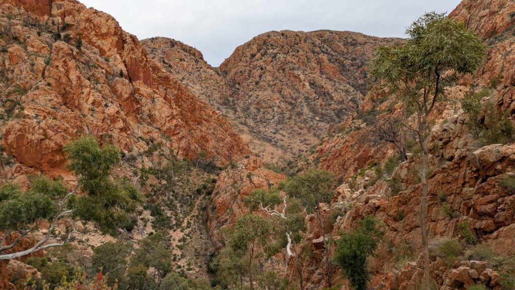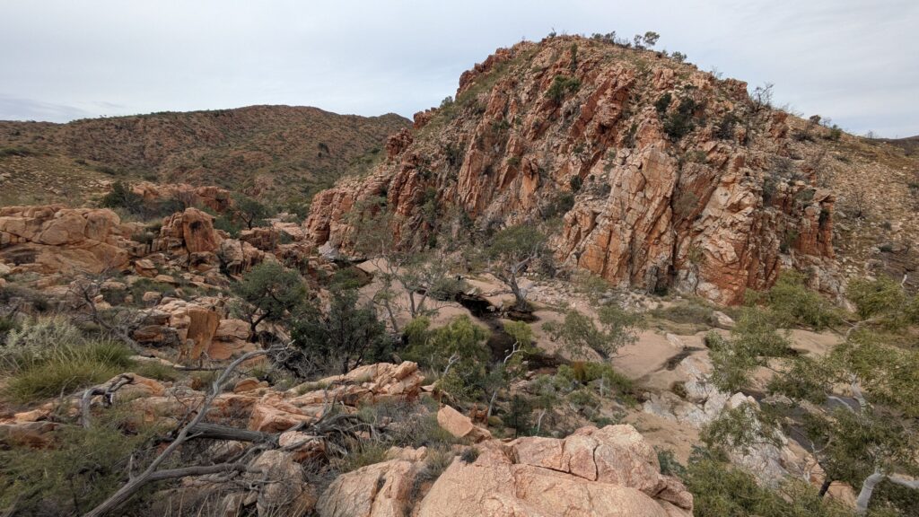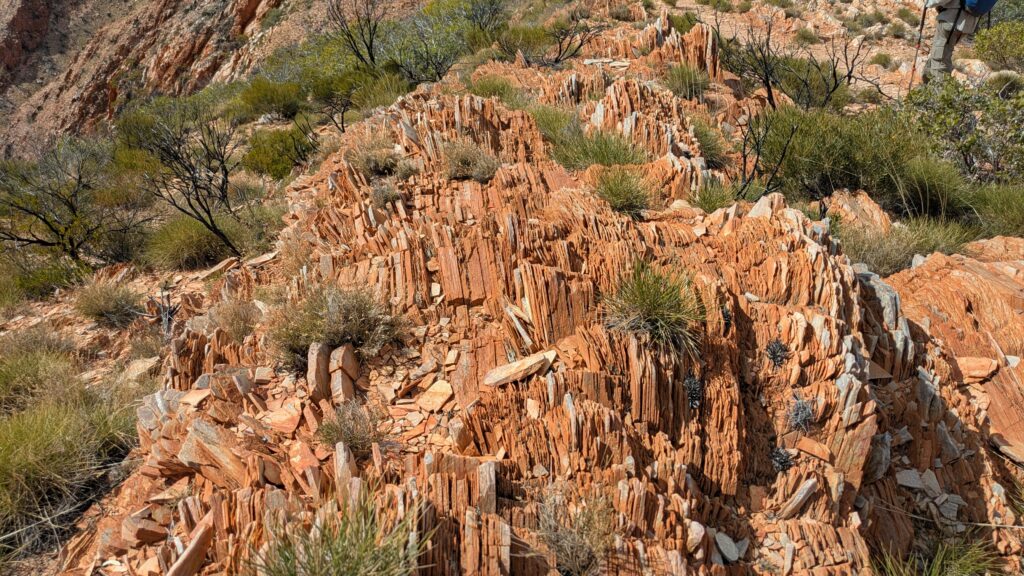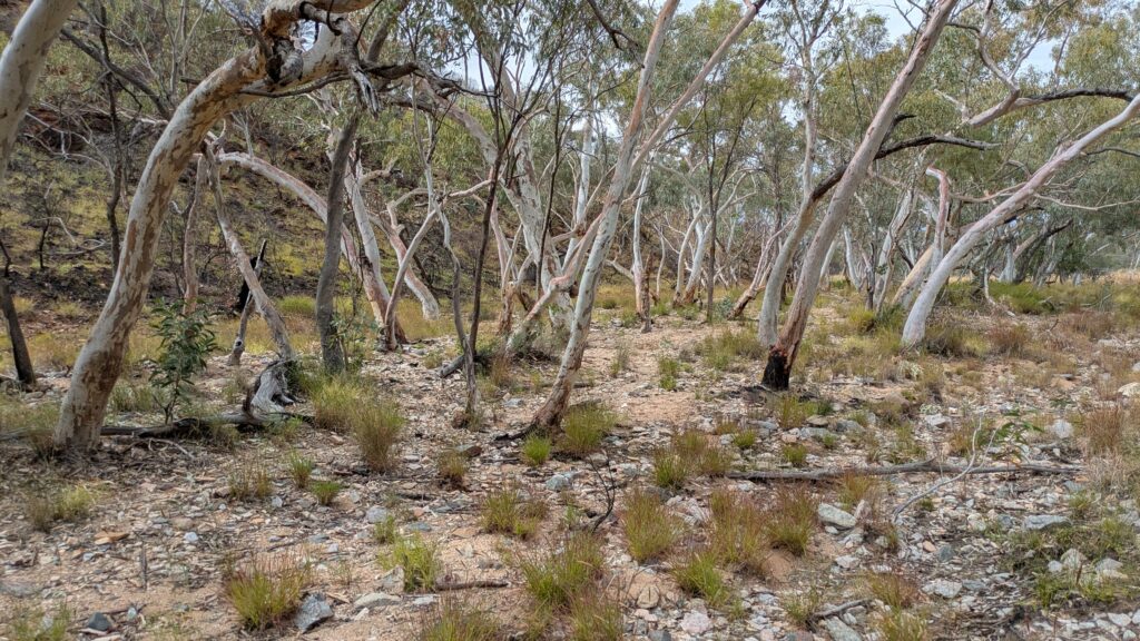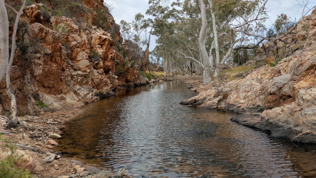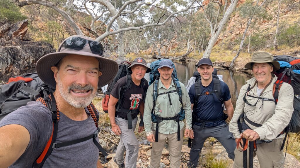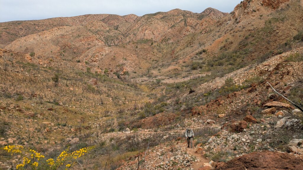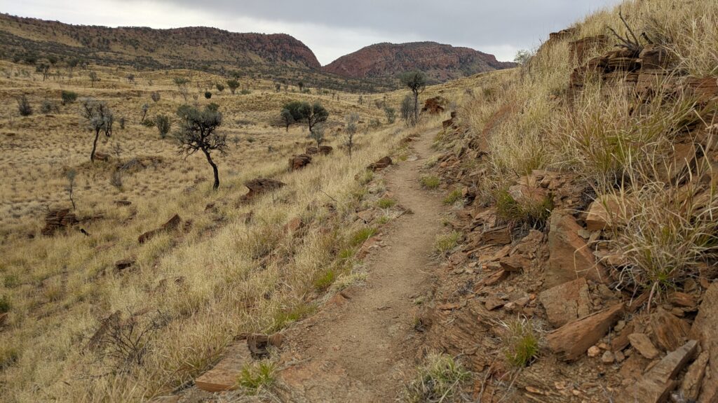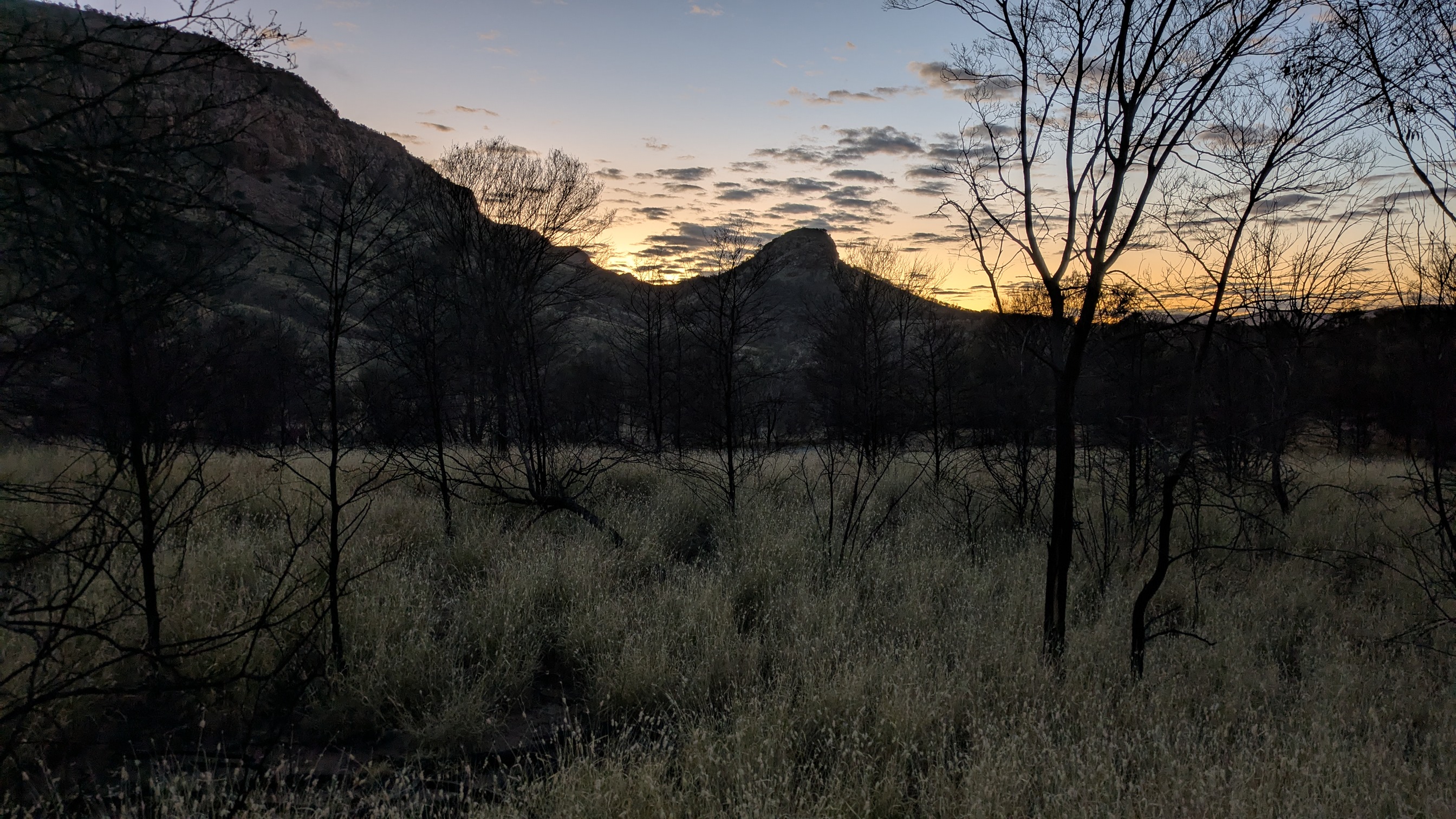 Following these three tough days we knew we had a relatively easy walk over the next three days to our finish line at the Telegraph Station near Alice Springs. The cloud cover and flatish terrain made perfect walking conditions and we covered the 13 kilometres to our next campsite before 1pm. This was an unappealing bush camp and it was too early to stop so we unanimously voted to push on to the following day’s camp site at Simpson’s Gap.