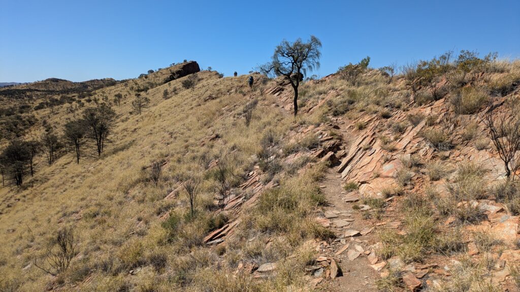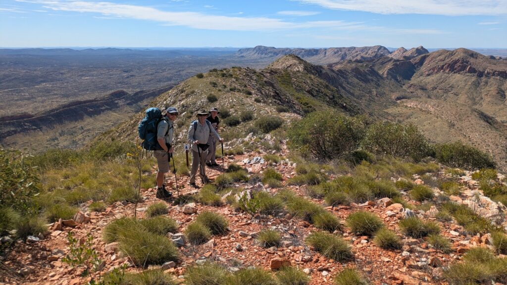 As we regathered at the top to catch our breath and breathe a sigh of relief for making the summit it was the 360° views that reminded us why this is all so worthwhile. The West MacDonnell Range runs a long jagged line across the distant desert plains and at that moment I didn’t want to be anywhere else.