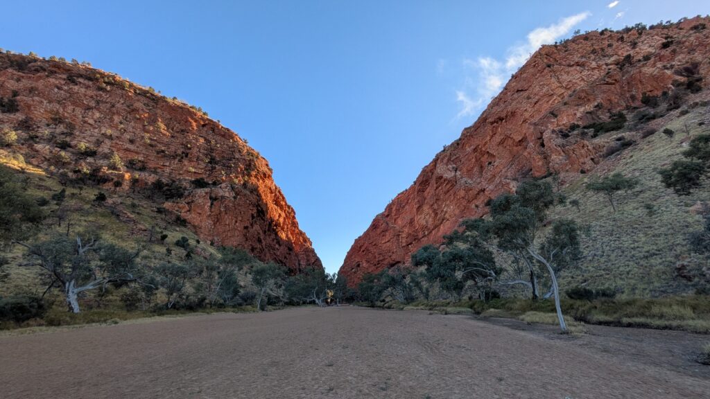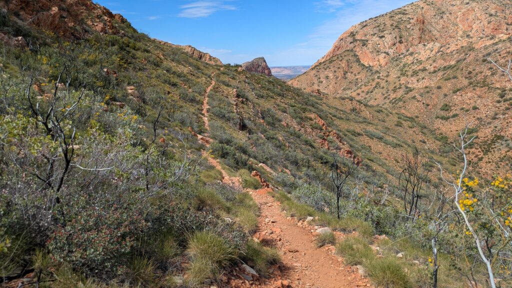 The next morning we explored Standley Chasm itself, it’s towering vertical walls little more than an arm’s stretch apart, before climbing straight up the chasm walls itself and attacking a series of steep ups and downs all morning. These mountains never seem to give you a breather but to hardened hikers like ourselves it was all good fun.