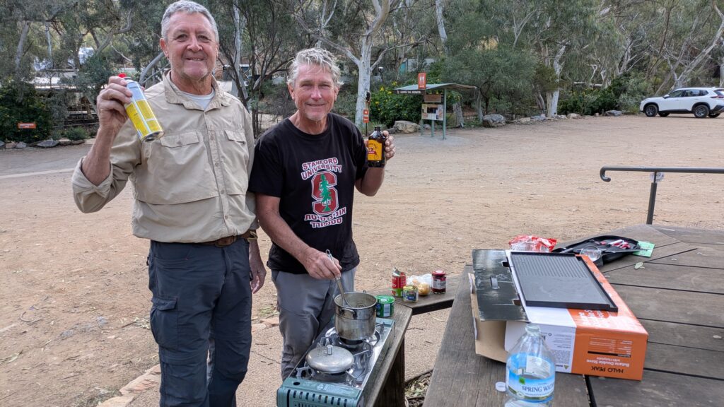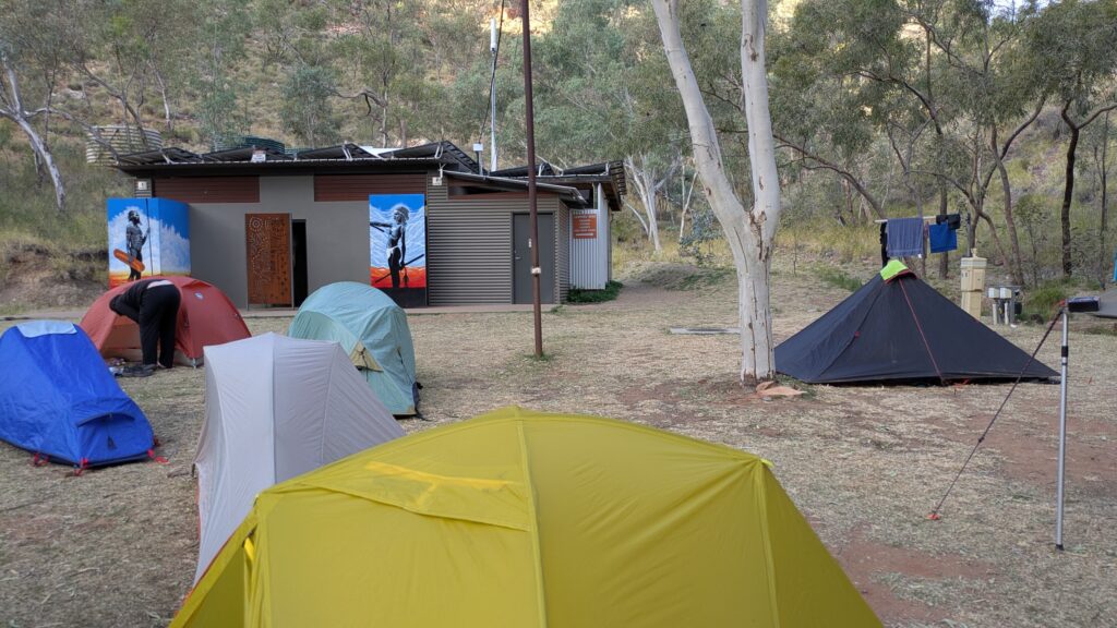 Standley Chasm is accessed via a paved road, has a full-on café, camping area and toilets, the later two of which are uncomfortably close together. Never mind, we treated ourselves to burgers and milkshakes in the café while comparing sore muscles and reminiscing on the wonders of the day’s walk. A hot shower and Hoppy’s tasty tuna pasta finished off a 19 kilometre day on the trail.