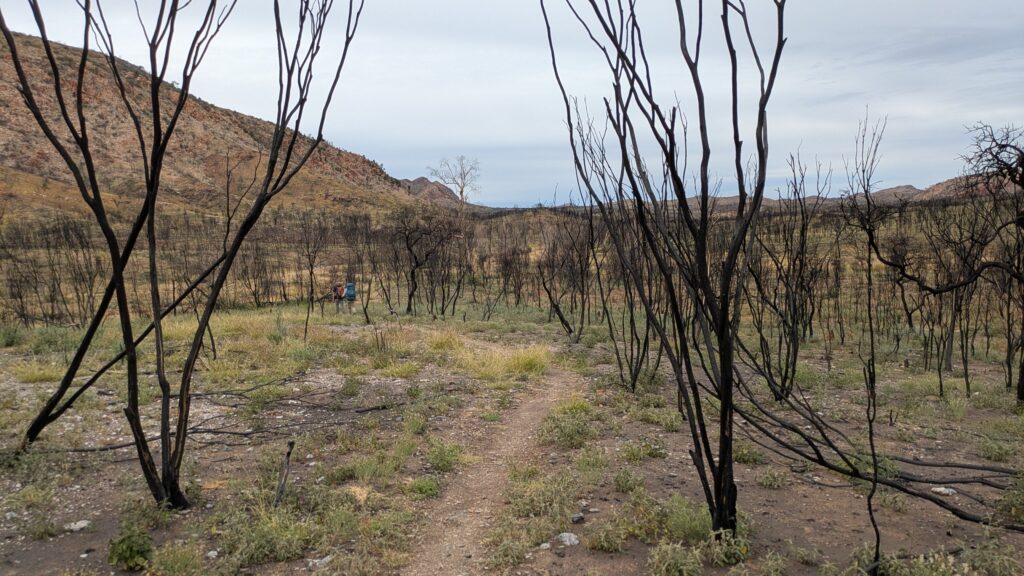 We passed through areas that had recently been burned from lightning strikes before following a dry creek bed for some ways until reaching the Jays Creek campsite and shelter.