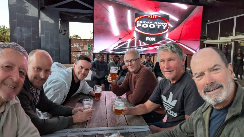 And that’s exactly how it played out. Pearcey met us at the Telegraph Station where we hoisted icy cold beers in celebration of our victory over the Larapinta Trail and we commuted to our villas for well-earned showers and more beers. We managed to patronise three different establishments that night, all of which included some combination of drinks, food, footie on the big screen, a busy pool table and a rousing night of karaoke where the locals entertained us with their melodies.