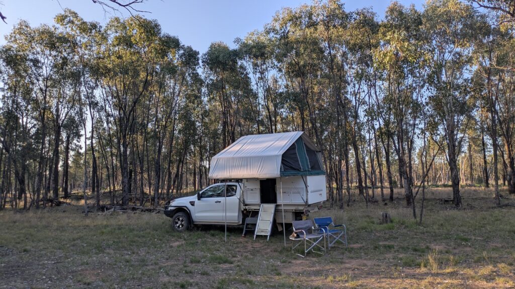After passing through the major regional town of Cobar, rich with it’s gold and copper mining, we trucked on for a while before stopping at a roadside rest stop and tucking ourselves between the trees for another beaut night. We could get used to this.