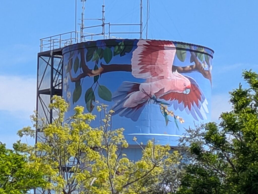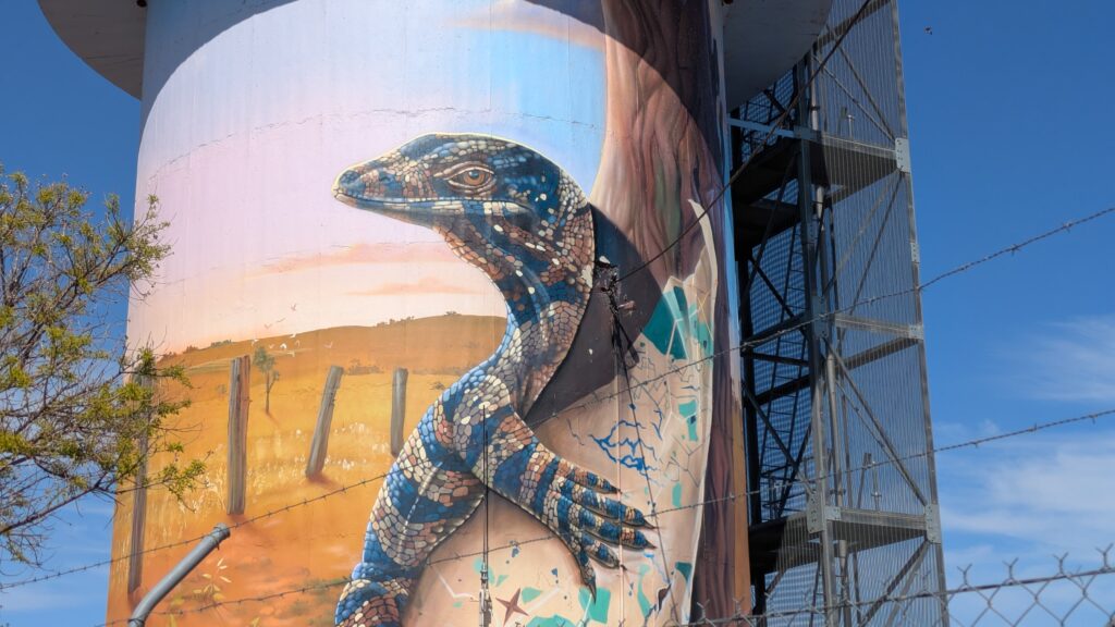 But South Australia is a long way away, or to put it another way, Australia is a forever big place. We followed our noses to the regional centre of Nyngan where we refuelled and checked out another beautifully painted water tower and a dusty shearing shed museum.