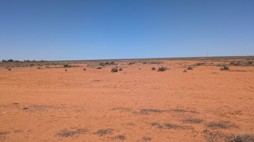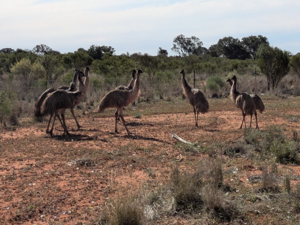 We then turned due west along the Barrier Highway and crossed the flag scrubby land with thousands of feral goats on the side of the road and the occasional mob of emus to keep us company. Gone are the rolling hills or undulating land, the rich farmland or cattle grazing on green grass. Instead, the dirt turned red, the road seemed to lose all it’s bends and the flies were in attack mode.