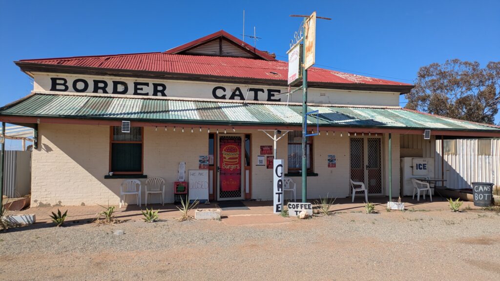 In the late afternoon we drove the 35 kilometres out of Broken Hill, stopping within metres of the South Australia border and setting up for the night behind the Border Gate Diner in a windswept somewhat forlorn spot next to the train line. It wasn’t pretty but it did the trick.