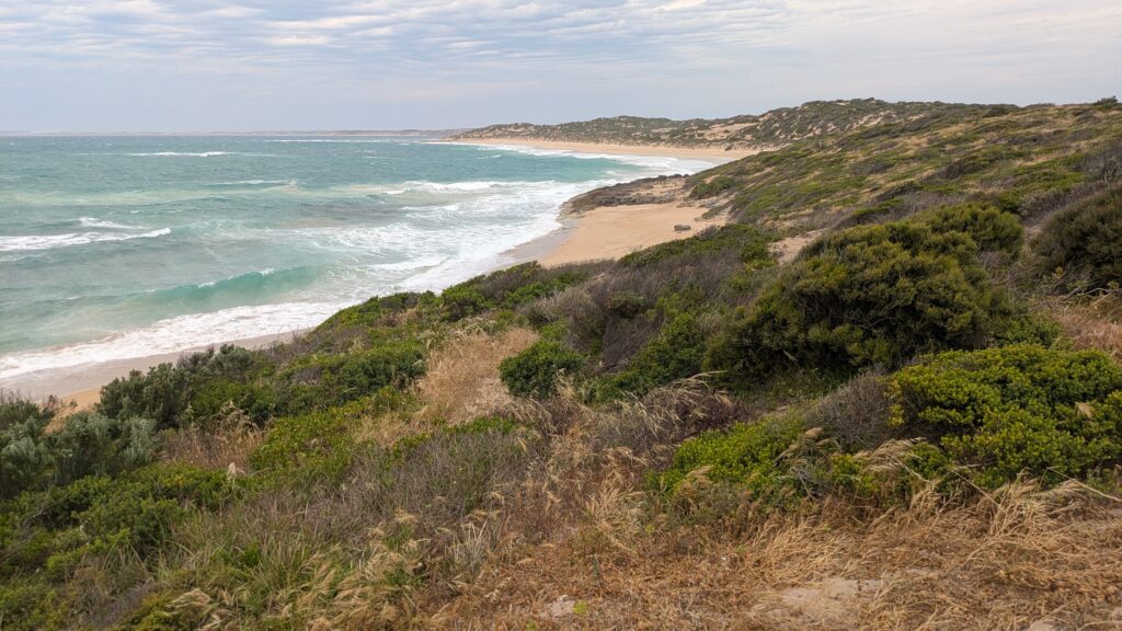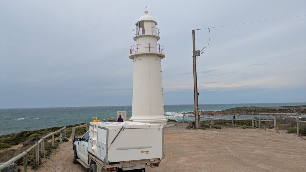 From Minlaton we headed to the west coast and followed a series of paved and dirt tracks that hugged the coastline around the blunted tip of the peninsula. We visited the historic Corny Point Lighthouse and impressive Gym Beach. But the wind was howling like a son of a gun and there was no way we wanted to camp in these conditions so we headed to the tip of the peninsula and the Innes National Park where we found a semi-protected spot near the beach. It still blew and rained off and on all night.