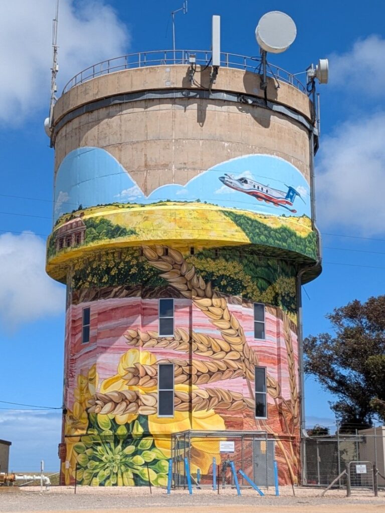 On we trundled under grey stormy skies through more wavy fields of grain, through non-descript Maitland to the town of Minlaton. Minlaton, the self-proclaimed Barley Capital of the World, is also the home town of Harry Butler, a World War I flying ace in Europe who came back to Australia and amongst other things, in 1919 flew the mail from Adelaide to the Yorke Peninsula, thereby being the first air mail service over open water in the southern hemisphere. You read it here first.