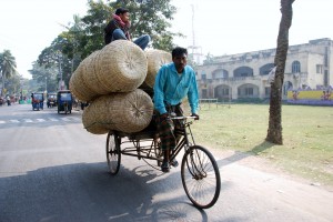 The traffic in rural Bangladesh was completely different to Dhaka. Most people travelled by foot, just walking along the road, sometimes with their animals. Others pedaled their bicycle and of course there were the ubiquitous rickshaws carrying people as well. There might have been a couple other auto-rickshaws and many large trucks but we could remember seeing only one privately owned car the whole journey. The locals live a fairly basic life and transport options are very limited and rarely used.