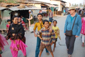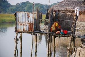 We also stopped at a village on the banks of the main channel and walked amongst its very simple huts. The villagers were incredibly friendly and invited us to sit down for a chat as we tried to imagine what life would be like here in the rainy season when all this dirt would turn to mud. A number of the ladies were taken by my dashing good looks and made offers to Julie to take me on. The rare flattery was all going to my head until our local guide told us the village acted as a brothel for the town of Mongla.
