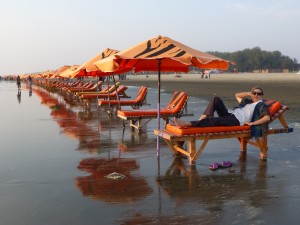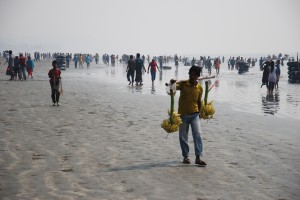 After checking into the Ocean Paradise Resort (only the best for us!) we walked down to the beach to get an up close view of this monster. As they say, the devil is in the detail. There was very little surf coming off the Bay of Bengal and the ‘sand’ is a bit dark in places like it has an element of mud mixed in. But the crowds were out in force, enjoying the late afternoon sun, walking along the water’s edge, taking photos of themselves (and us).