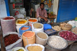 Grains, spices, rice and nuts are all for sale in Old Dhaka