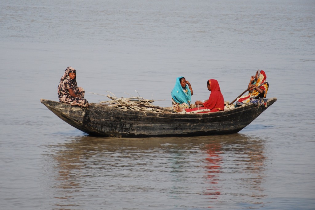 Women and children crossing the Buriganga River in Dhaka