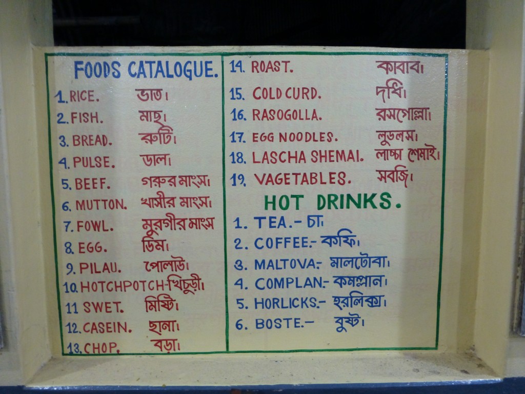 The menu written on the wall at a local restaurant in Mongla