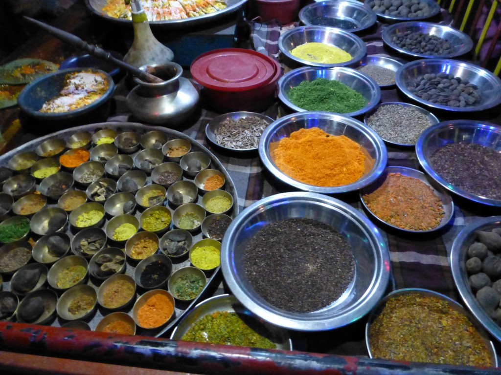 Colourful spices for sale from a street stall in Mongla