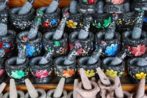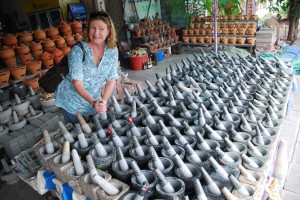 No self-respecting cook in Thailand can survive long without a mortar and pestle. Julie is becoming a more serious student of Thai cooking, much to my benefit, but she was seriously lacking in the mortar and pestle department. I wasn’t even sure which one was the mortar and which one was the pestle so it seemed like a good excuse to have a weekend excursion and include a stop at the mortar and pestle capital of Thailand.
