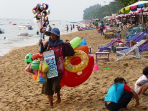 Jomtien is the beach resort area past the headland just south of Pattaya. Pattaya is the more famous beach destination, close to Bangkok, nice beaches, good variety of hotels and a very lively nightlife. It is said that the famous Thailand red light districts and girly bars were first established here in Pattaya for American soldiers on leave from the Vietnam War. Whatever the case, Pattaya is now dominated by the seedy nightlife and heavily infiltrated by drugs and organised crime. There goes the neighbourhood.