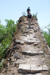 Our plans were a little more modest as we made the 20 minute climb up the valley to get to the base of the wall. From there we climbed up the stone steps and were instantly stunned by the scene that panned out in both directions. The terrain in all directions was very rugged with steep rolling mountains covered in thick trees and bushes. This was an inhospitable yet beautiful place of green mountains and blue sky.