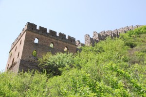 Back up the hill through some crunching switchbacks on a full stomach to the base of the wall and then we clamoured up onto this monstrous snake again. On we trekked eastward, up and down the steep sections, each summit providing grand views of the mountains and wall in all directions. This is called the Jinshaling section and as we progressed we saw the first signs of restoration on the wall. This is a slightly more popular section for tourists (over 95% of which are Chinese) and has a more significant historical value to the locals, hence more investment from the government.