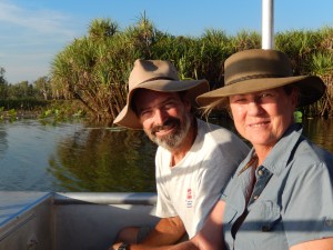 Huge 500 kg crocs hear the boat coming and are prepared to spectacularly jump out of the water to grab the buffalo meat, to the delight if the snap-happy tourists. Yes, it was a bit touristy and contrived and maybe a bit dangerous but we loved it and at times were so close to crocs by the side of our little boat we could have reached over and touched them. But being crocodile experts we resisted.