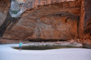 We spent two great nights in the Bungle Bungles and packed in just about everything a visitor can do, such is the limits to how you can see this amazing range and the size of the place. On the northern section we walked up to very deep and narrow chasms, at many points so narrow we could easily touch both sides of the 150 metre walls as we walked through. These were shot canyons that are filled with raging water during the wet season in unimaginable power and fury but are walkable in the dry season if you are prepared to scramble over huge boulders, squeeze through narrow openings and cram your neck upwards to marvel at the red sandstone walls above you.